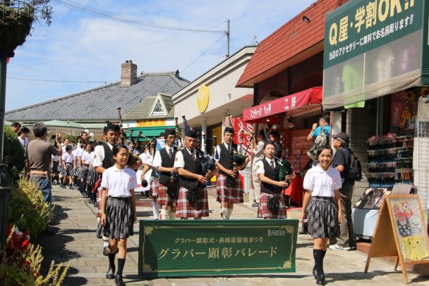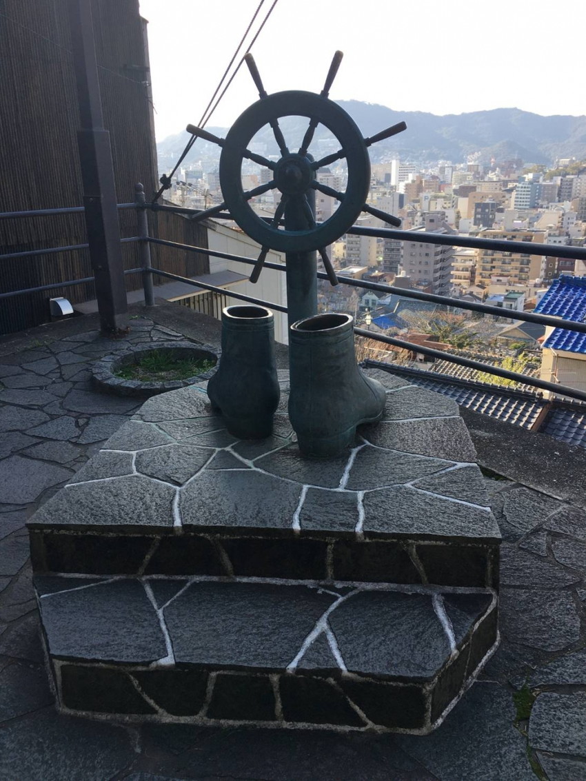 全国の有志からの募金によって建立された坂本龍馬之像は長崎の港町を見下ろしています。歴史あるハタが長崎の 空を舞うハタ揚げ実演も行っています。