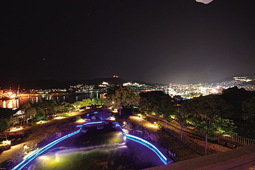 平成15年(2003)、長崎港に面した内港エリアに誕生した公園。園内には運河が配され、水と緑にあふれた憩いの場として市内外の人々の人気を集めている。水遊びや散策が楽しめる。