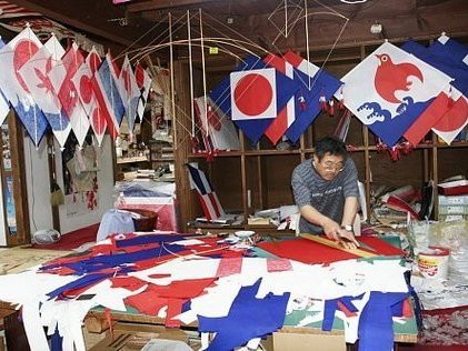 小川凧店は、ハタ(凧)一筋の専門店で、凧の制作から展示・即売をしています。
