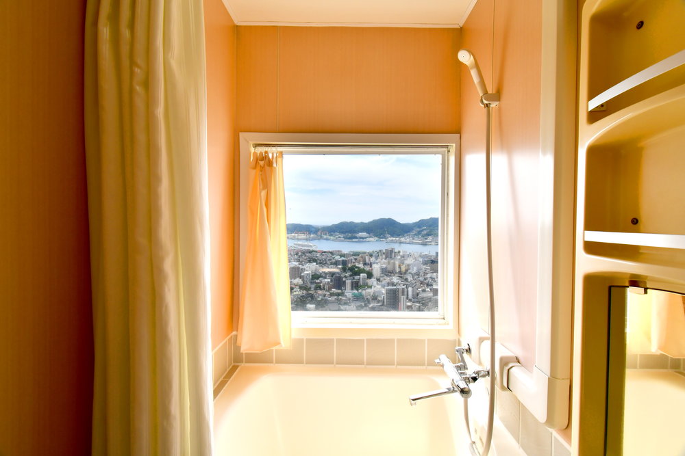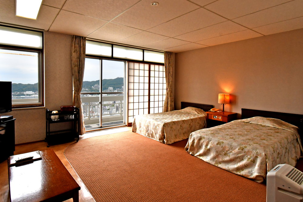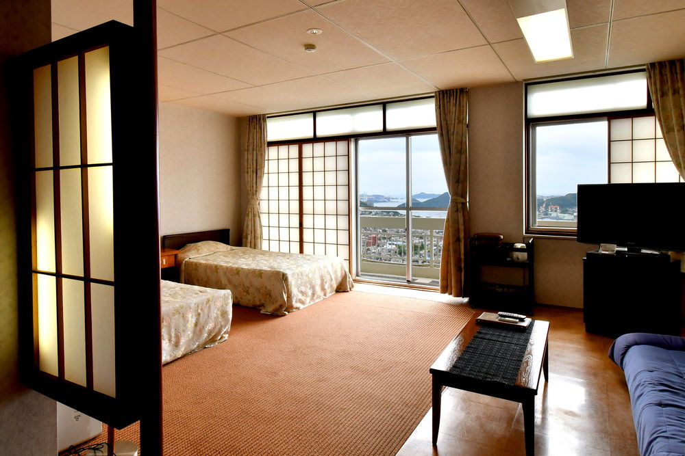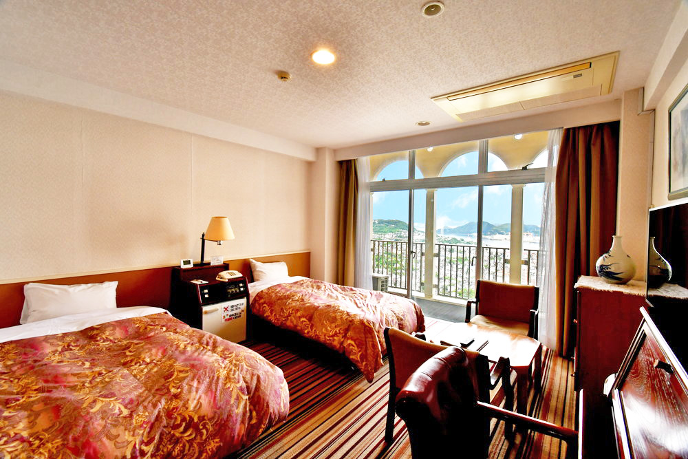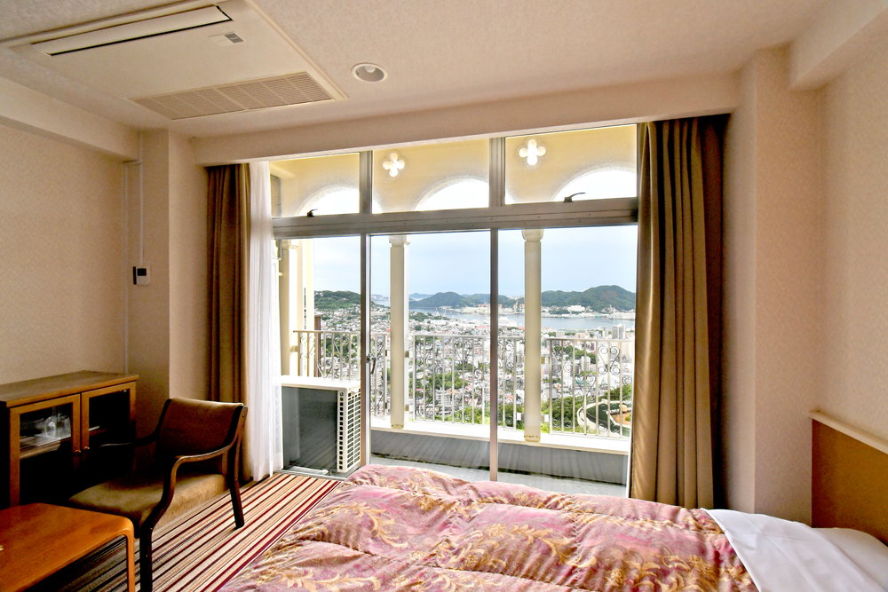 窓から長崎の港町や夜景が楽しめる洋室のお部屋です。