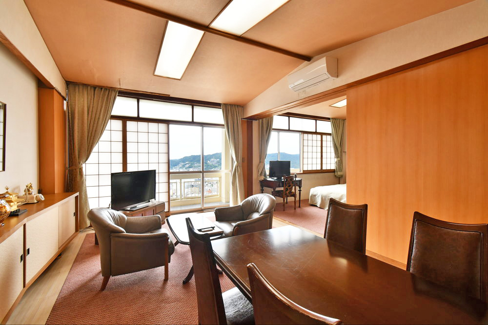 贅沢をこらした広々としたつくりになっており、長崎市街を一望できる眺めの良いお部屋です。