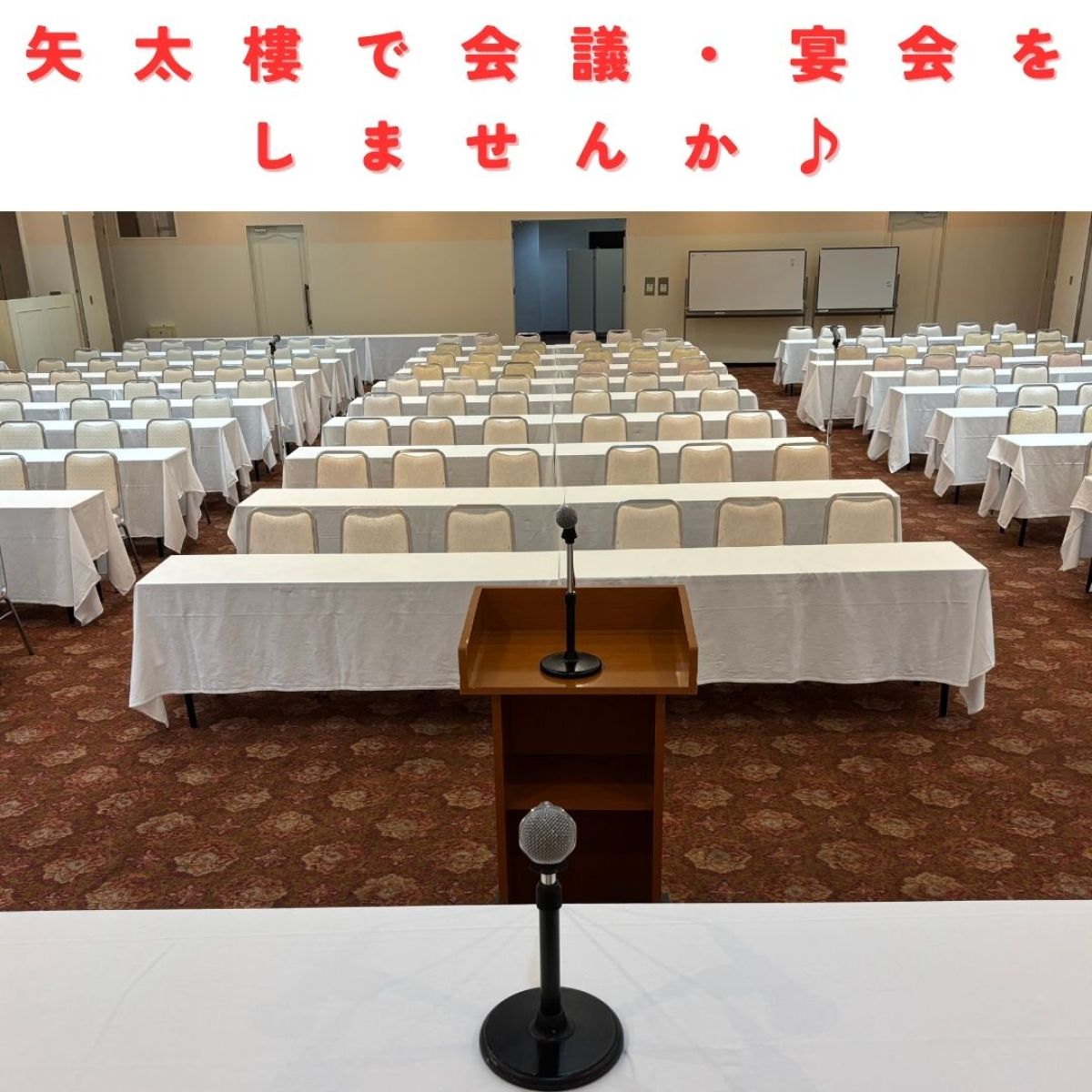 会議や総会、研修会に勉強会とこれまでも様々な形態の会議をお引き受けさせて頂きました。是非、これからご検討される場合は矢太樓までお気軽にお問合せ下さいませ♪